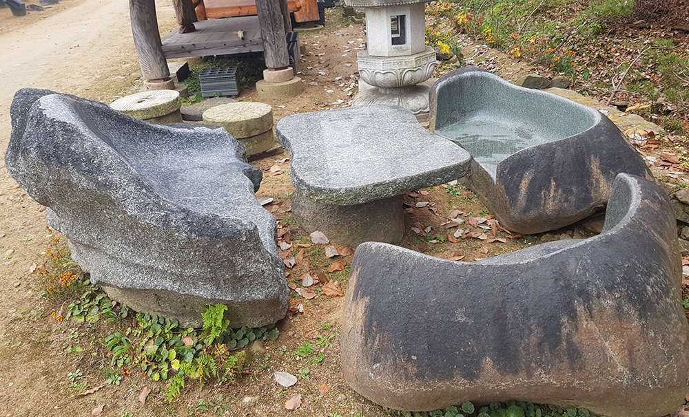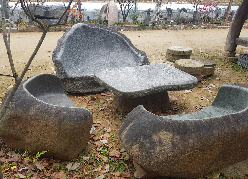 190x100x120cm 양평석 통돌의자와 통돌탁자