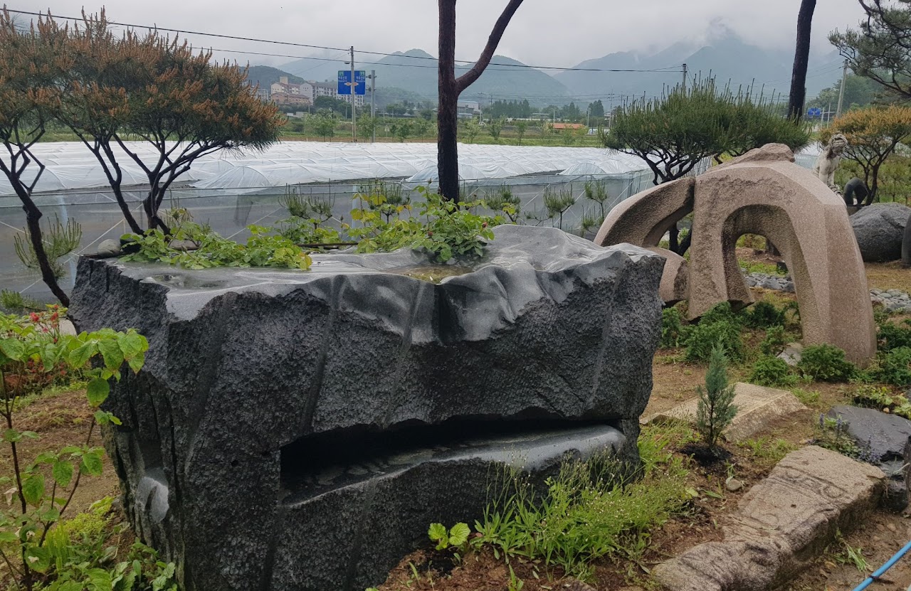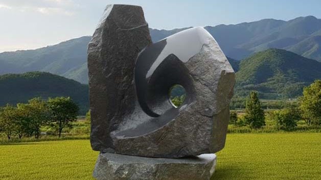 돌과 금속, 브론즈가 가진 본연의 거친 물성은 부드러운 식물과 만났을 때 비로소 극적인 긴장감을 만들어냅니다. 인위적인 가공을 최소화하여 재료 자체가 가진 원시적인 힘을 드러내거나, 혹은 작가의 치열한 노동으로 다듬어진 매끄러운 곡선이 자연의 불규칙함과 조화를 이룹니다. 비에 젖고 이끼가 앉으며, 작품은 자연의 일부로 서서히 동화되어 갑니다.